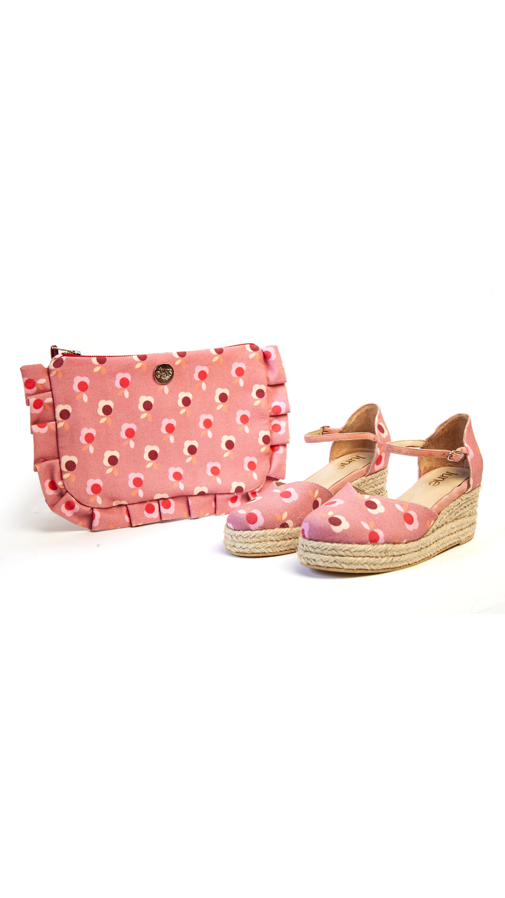 Espadrille de lona con estampado en color rosa; diseño floral exclusivo by JUNE®. Hecho a mano en Argentina.