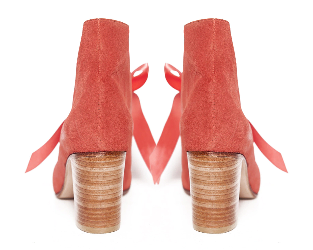 Botineta en gamuzón. Cordones de falletina al tono. Hecho a mano en Argentina.